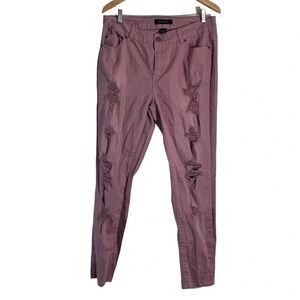 Ashley Stewart Distressed Jeans Size 14 Dusty Mauve Pink Purple Skinny Stretch