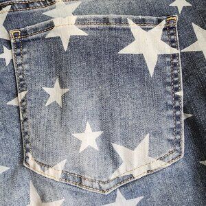 Ashley Stewart Distressed Star Print Denim Capris