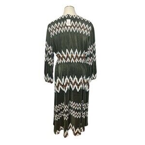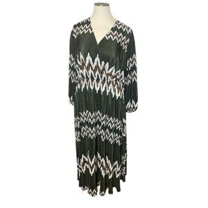 Ashley Stewart Dress Womens 24 Green Maxi V Neck Long Sleeves Elastic Waist NWT