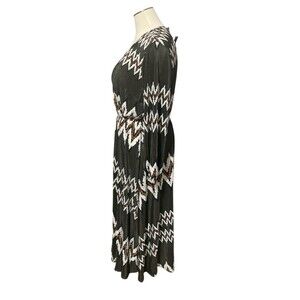 Ashley Stewart Dress Womens 24 Maxi V Neck Long Sleeves Elastic Waist Career