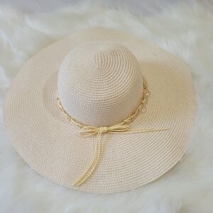 Ashley Stewart Elegant Cream Sun Hat with Gold Accents