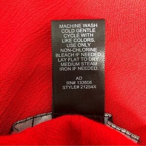 Red, elastic neckline, bell sleeves, embroidered detail down center front,curved hem, colors may vary due to lighting, good used condition, Sz 14