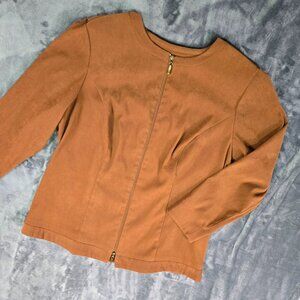 Ashley Stewart Faux Suede Jacket | Brown Zip-Up | Women's 16 | Vintage Style