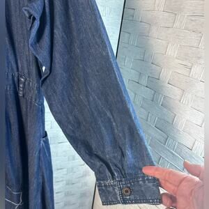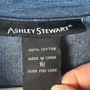Ashley Stewart Full length Button Down Denim Dress long sleeve raw hem in excellent condition plus size 16