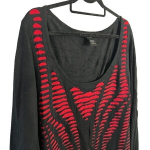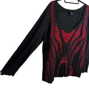 Ashley Stewart Knit Sweater Blouse Size 22 24 Red Black Textured Long Sleeves