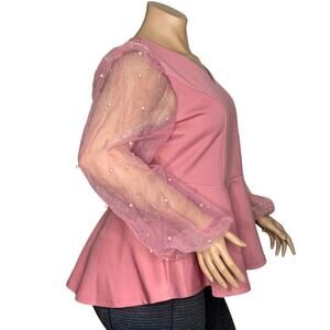 Ashley Stewart NWT Peplum Sheer Long Sleeve with Pearls Back Key Hole Size 18/20