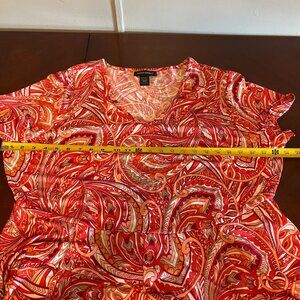 Ashley Stewart Paisley Print Dress 22/24 Vibrant Red & Orange short sleeves