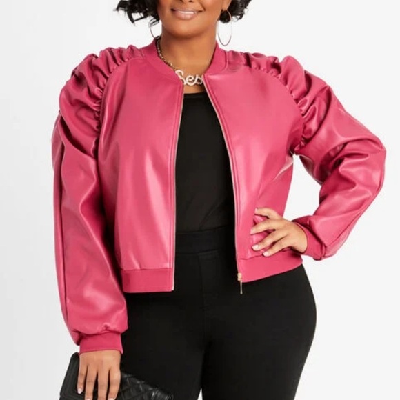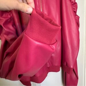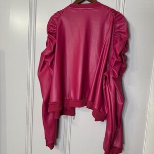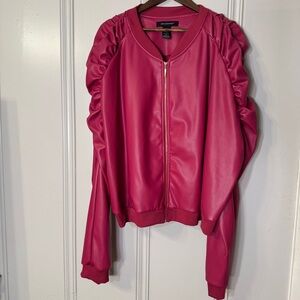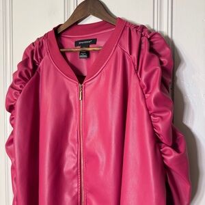 Ashley Stewart Plus Size Faux Leather Ruched Bomber Jacket Hot Pink Ruffle 32 5X