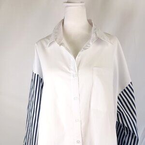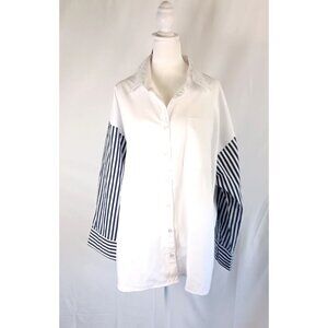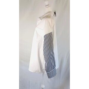 Ashley Stewart Plus Size White Blouse Striped Sleeve Button Front 14 NWT
