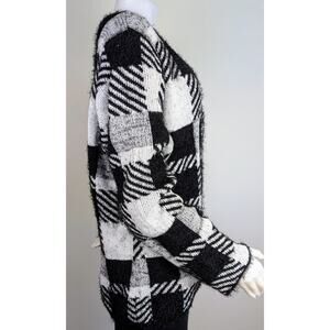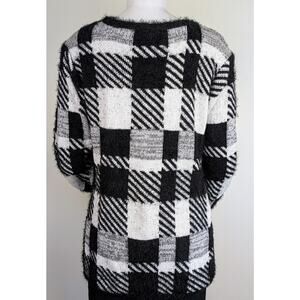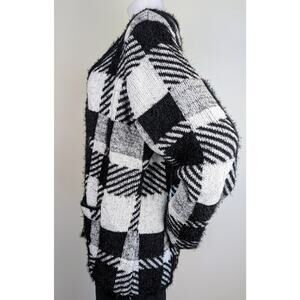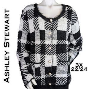 Ashley Stewart Preppy Black White Check Fuzzy Knit Cardigan Sweater Size 3X