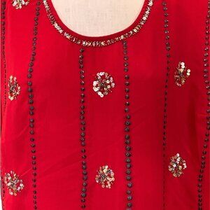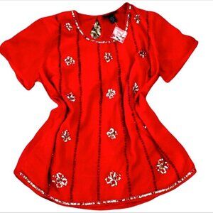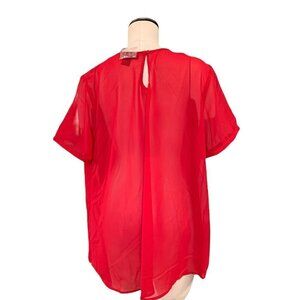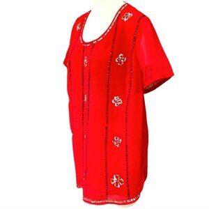 Ashley Stewart Red Sheer Sequined Short Sleeve Tunic Top Plus Sz 18/20 #194F