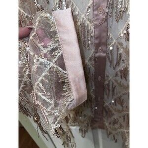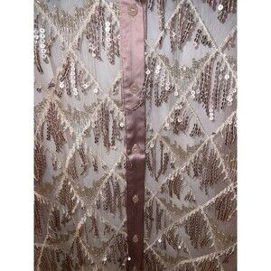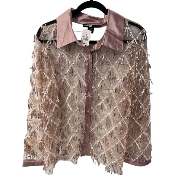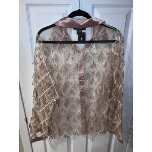 Ashley Stewart Sequin Fringe Blouse Womens Plus 18/20 Button Front Sheer Tan New