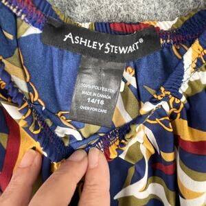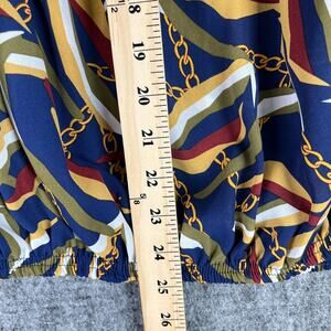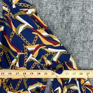 Ashley Stewart Shirt Womens 16 Blue Chain Print Flare Sleeve Blouse Party Club