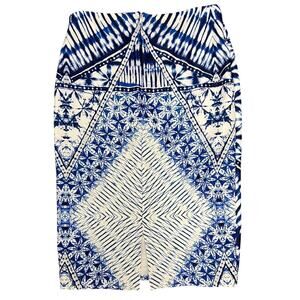 💙 Ashley Stewart Size 12 Pencil Skirt Blue White Geometric Boho Y2K Stretch