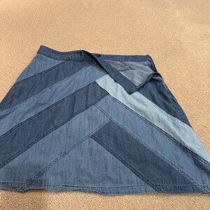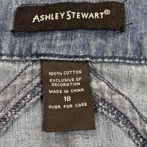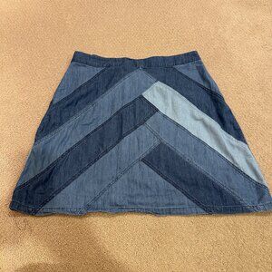 Ashley Stewart Skirt Chambray Denim Patchwork Side Zip A-Line Boho Preppy Size 18 Lightweight Feminine Plus Size