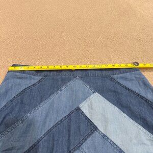 Ashley Stewart Skirt Patchwork A-Line Chambray Denim Side Zip Boho Preppy Sz 18