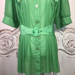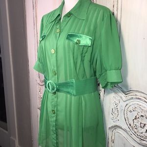 Ashley Stewart Spring Green Sheer Belted Short Sleeve Button Down Top Size 14