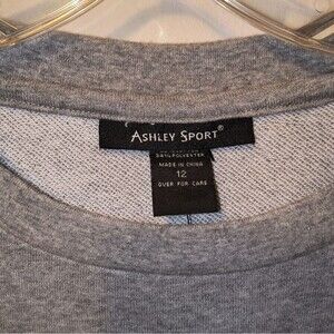 Ashley Stewart Chic gray sweatshirt with elegant ruffle detailing, perfect for adding a touch of style to your casual wardrobe.