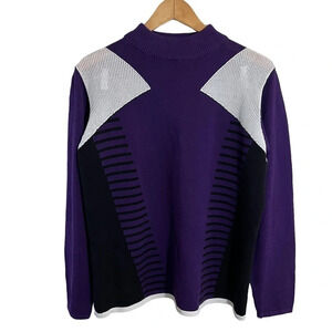 Ashley Stewart Sweater 22/24 Colorblock Lace Accent Mock Neck Stripe Dark Purple