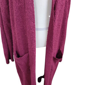 Ashley Stewart Sweater Women's 26/28 Burgundy Long Cardigan Open Front Pockets