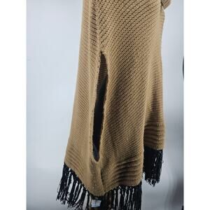 Ashley Stewart Tan Brown Knit Sleeveless Sweater Poncho Cowl Neck Fringe Detail