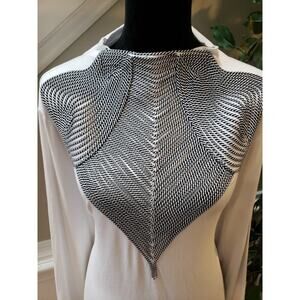 Make a bold statement with this Ashley Stewart women's top in size 22/24. Featuring a striking black embellished design across the chest on a crisp white base, this long sleeve blouse offers stretch comfort and eye-catching style. Perfect for evening outings or elevating your everyday wardrobe.