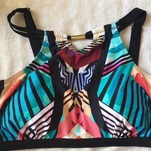 Hot and trending, this plus size swim top features tribal print with a peekaboo neckline - Adjustable straps - Double hook back closure - Lined. Lightly padded cups - 82% nylon 18% spandex -Hand wash cold Do not bleach, wring, iron, or dry clean. Lay flat to dry in shade. - gently worn, no flaws - size 12