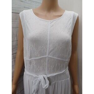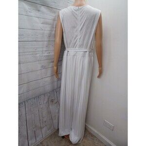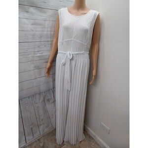 Ashley Stewart White Sleeveless Tie Waist Pleated Wide Leg Jumpsuit 20W Chiffon
