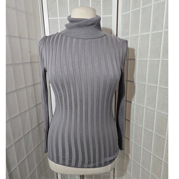 Ashley Stewart Women Gray Ribbed Knit Turtleneck Sweater Shirt Plus Size: 10/12