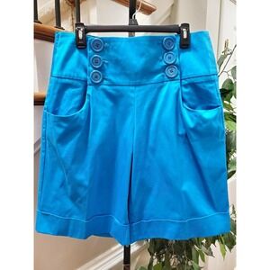 Ashley Stewart Women Solid Blue Cotton Mid Rise Buttons Front Casual Shorts 18W