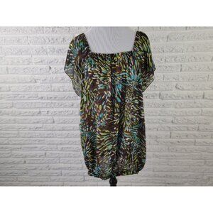 Elevate your casual look with this beautiful Ashley Stewart womens top. The boat neckline creates a flattering look, while the short sleeve classic/fitted sleeve design provides a comfortable fit. This blouse features a stunning watercolor design in blue and brown shades, perfect for any season. The pullover closure makes it easy to wear, and the machine washable polyester material makes it easy to care for. This sheer blouse is perfect for a casual occasion, and its plus-size fit is designed to flatter. The top can be worn on or off the shoulder, making it versatile for any personal style. Whether you're going out for a walk or running errands, this top is a must-have for any wardrobe.