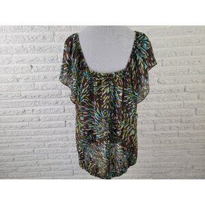 Ashley Stewart Women Top 20W Plus Short Sleeve On Off Shoulder Blue WAT52E