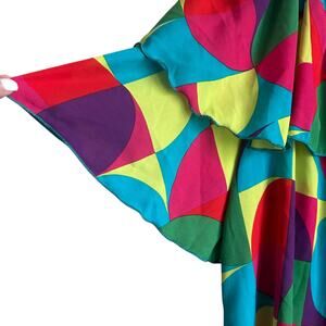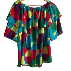 Ashley Stewart Women Top 3X Vibrant Rainbow Abstract Geometric Ruffle Collar