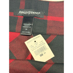 Ashley Stewart Women’s 24 Red Black Buffalo Plaid Midi Skirt Belted A-Line NWT