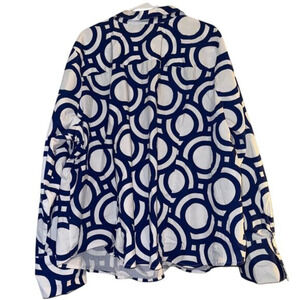 Ashley Stewart Women's Blue Geometric Print Collared Button-Up Shirt 32