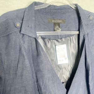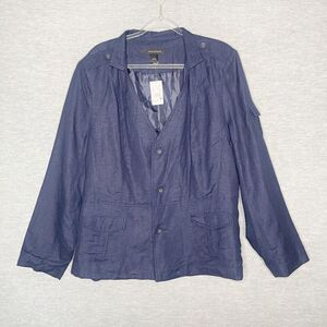 Ashley Stewart Womens Linen Blazer Jacket Plus Size 22W Navy Blue Military New