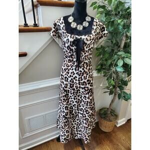Ashley Stewart Women's Linen Square Neck Short Sleeve Knee Length Shirt Dress 14