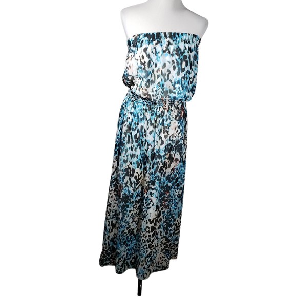 Ashley Stewart Women's size 12 Black & Blue Halter Maxi Dress Gently Used