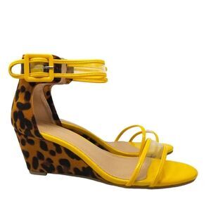 Ashley Stewart Yellow and Leopard Wedge Heels