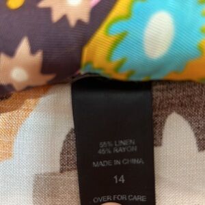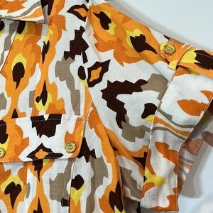 Ashley Stewart bohemian print linen Midi Shirt Dress 14 Orange Brown Button down