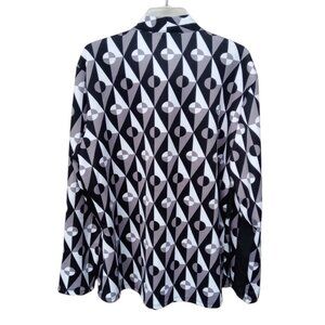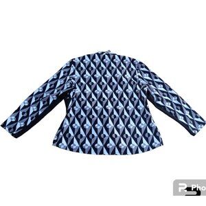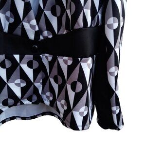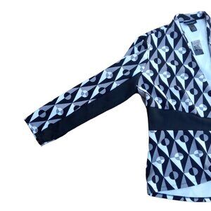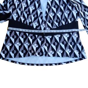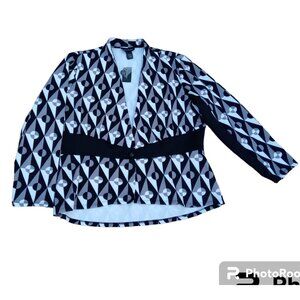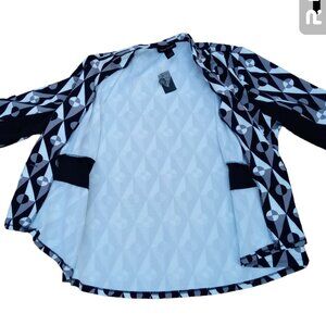 NEW WITH TAGS. Beautiful one button front closure. Black, white and gray diamond pattern. Measurements in photo. Made of polyester, spandex (stretch fabric). From a smoke free and cat/dog friendly home. (0027)