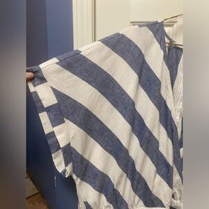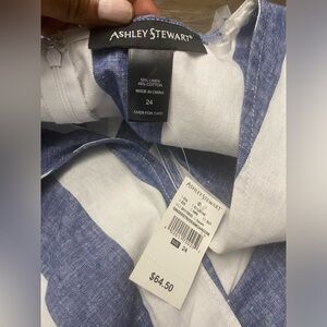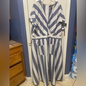 Ashley Stewart plus size linen blend stipe maxi dress with front pockets size 24