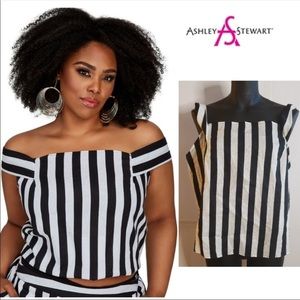 Ashley Stewart size 16 black & white striped lightweight off shoulder