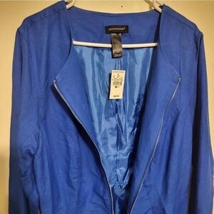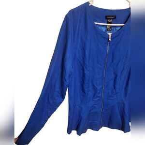 Ashley Stewart Victorian Blue Peplum Full Zip Jacket, Size 16 NEW w/Tag