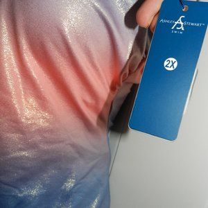 Ashley Stuart Women's Plus 2XL Shiny One Piece Swimsuit Purple/Pink🆕Fast💨⚡🚚