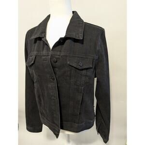 Ashley Vintage Charm Black Jean Jacket Botton Front Breast Pockets Women's SZ XL