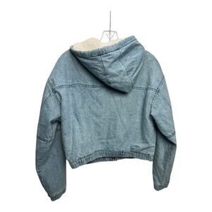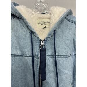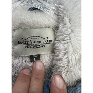 Ashley Vintage Charm Cropped Hoodie Denim Jean Jacket Womens Large Full Zip