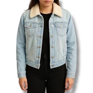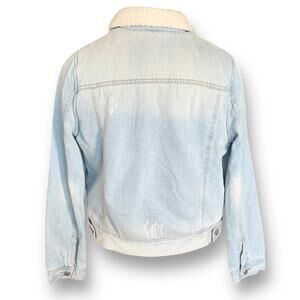 Denim Jacket Sherpa Lined Light Wash Casual Layering Winter Streetwear Rustic Western