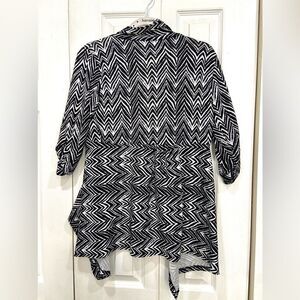 Ashley Blu 3/4 ruched sleeve asymmetrical mosaic print cardigan size large