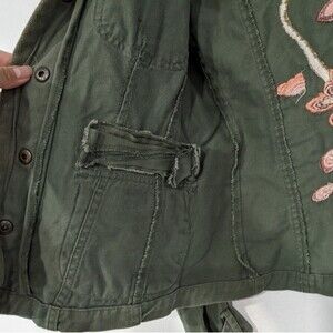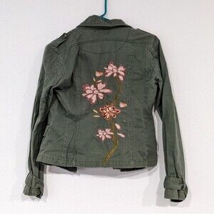 Ashley by 26 International Olive Jacket Embroidered Flowers, Women Small